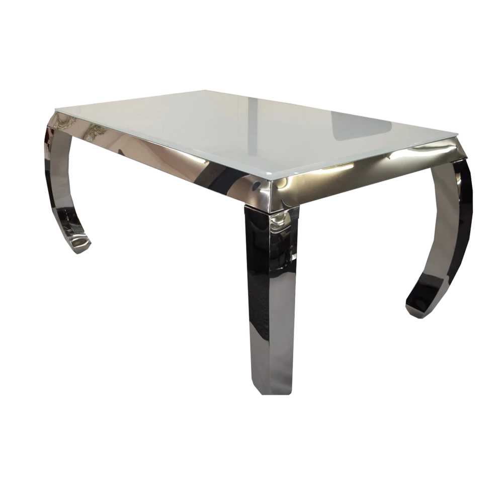 Add a touch of glamour and sophistication to your dining room with our Alpha Dining Table. Featuring a 1.6 meter grey glass top and simple yet effective under curved stainless steel legs.What you need to know about the Alpha Dining Table :Dimensions : 160cm length x 90cm Width*There may be occasionally a few cm variance in dimensions.