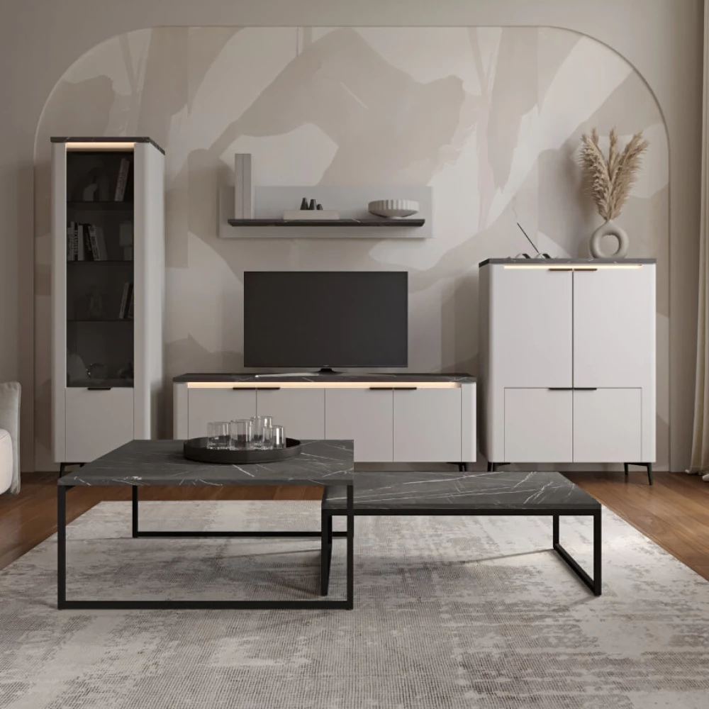 - Color Options: Available in White Gloss – Black Marble and Walnut – Cashmere finishes