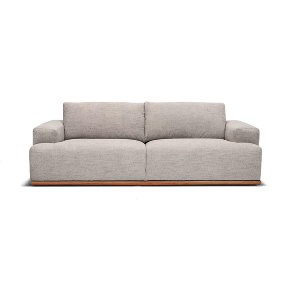 The legs are constructed from wood and stained with a polyurethane varnish, with a protective cover of PU paint applied according to RAL standards, giving a sleek and refined finish. The "Kent" sofa, with its clean lines and plush cushioning, is ideal for those seeking a modern, cozy sofa with a touch of elegance for their living area. -