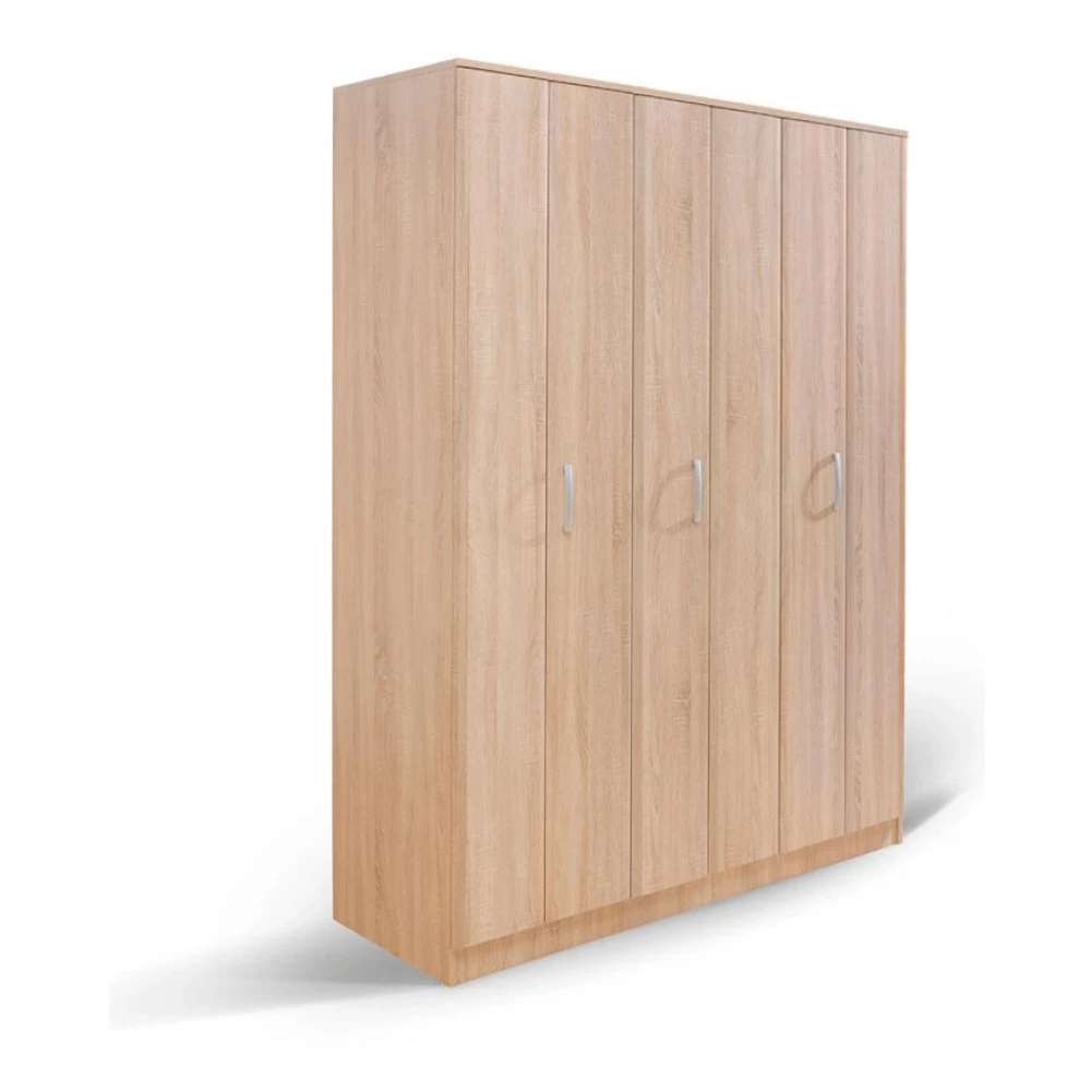 Width (cm): 150Depth (cm): 52Height (cm): 222Front Material: Particle boardBody Material: Particle boardParticle board Thickness: 18 mmEdge Finish on Front: Soft formingHandles: MetalEdge Banding: ABS 0.4 mmClothes Rail: YESNumber of Shelves: 7Finish Options: Artisan, Oak, Snow OakType of Item: WardrobeNumber of Packages: 4Package Dimensions (W x D x H): 1/4: 221×51.5×8.3 cm, 2/4: 150.5×52×8 cm, 3/4: 211×25.2×11 cm, 4/4: 16×16×13 cmPackage Weight (kg): 1/4: 56.7 kg, 2/4: 37.2 kg, 3/4: 38.3 kg, 4/4: 1.97 kg -