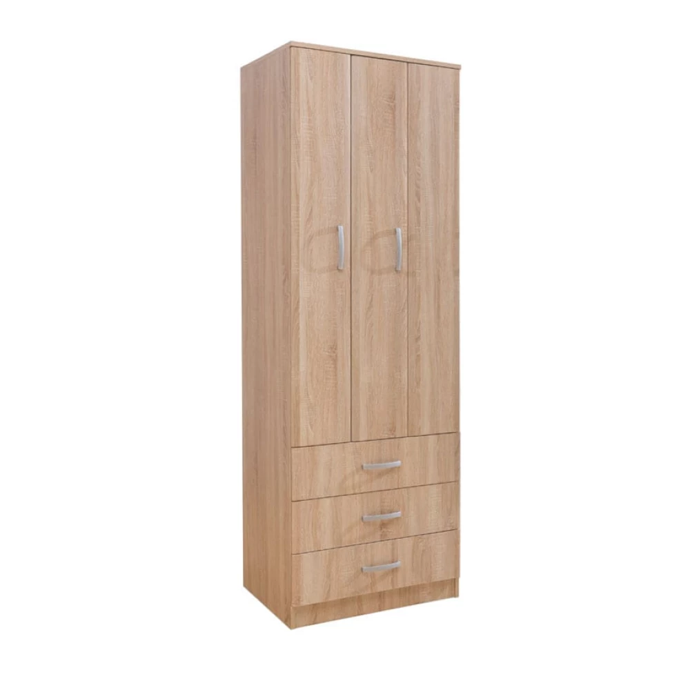 Designed for functionality, the SlimLine Wardrobe includes a clothes rail and a shelf for organizing garments, along with three lower drawers for additional storage. The wardrobe is available in a selection of finishes—Artisan, Oak, and Snow Oak—making it easy to match with various decor styles. Metal handles add a modern touch, while the straightforward design keeps everything accessible without the need for a soft-close mechanism.